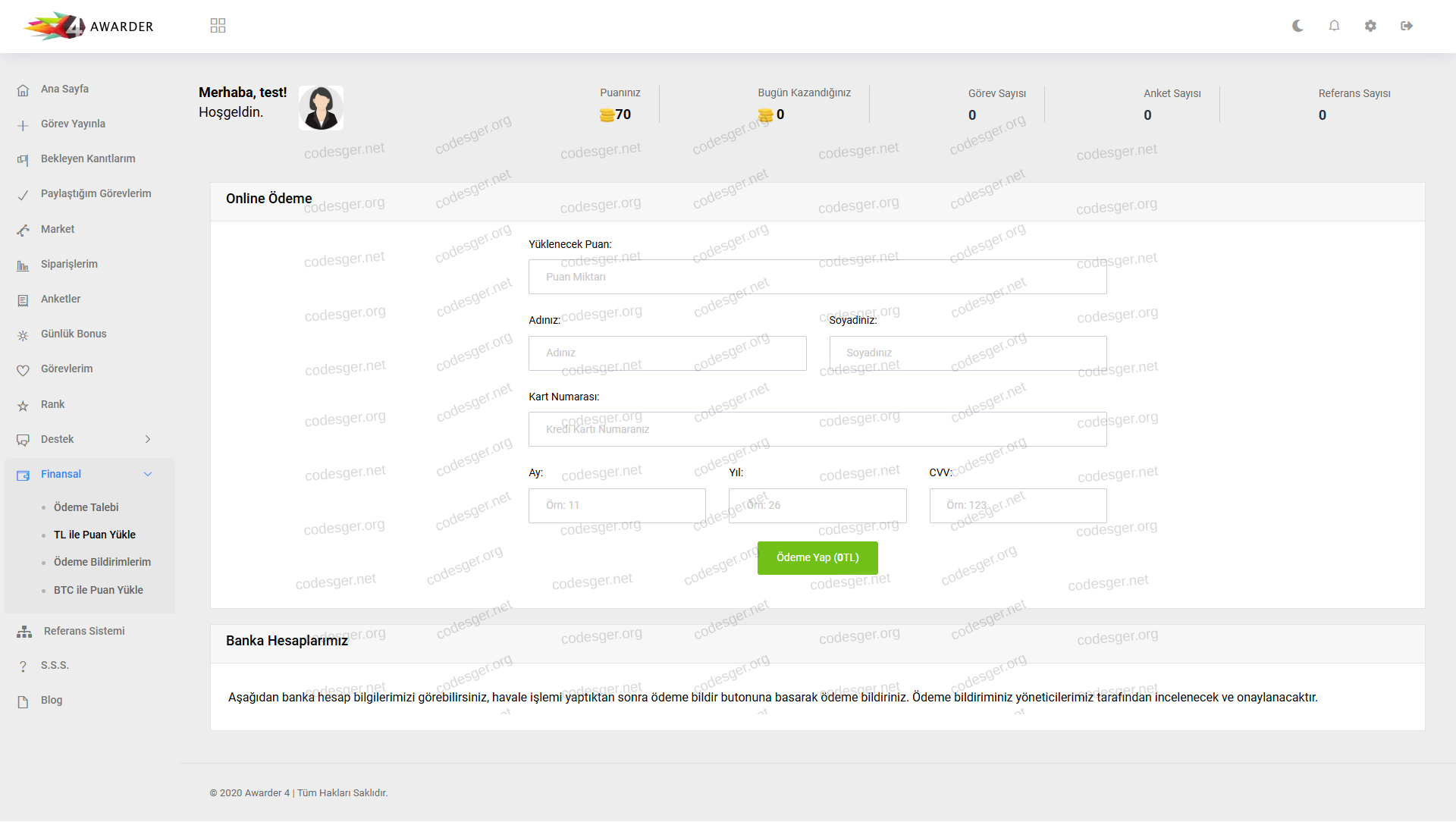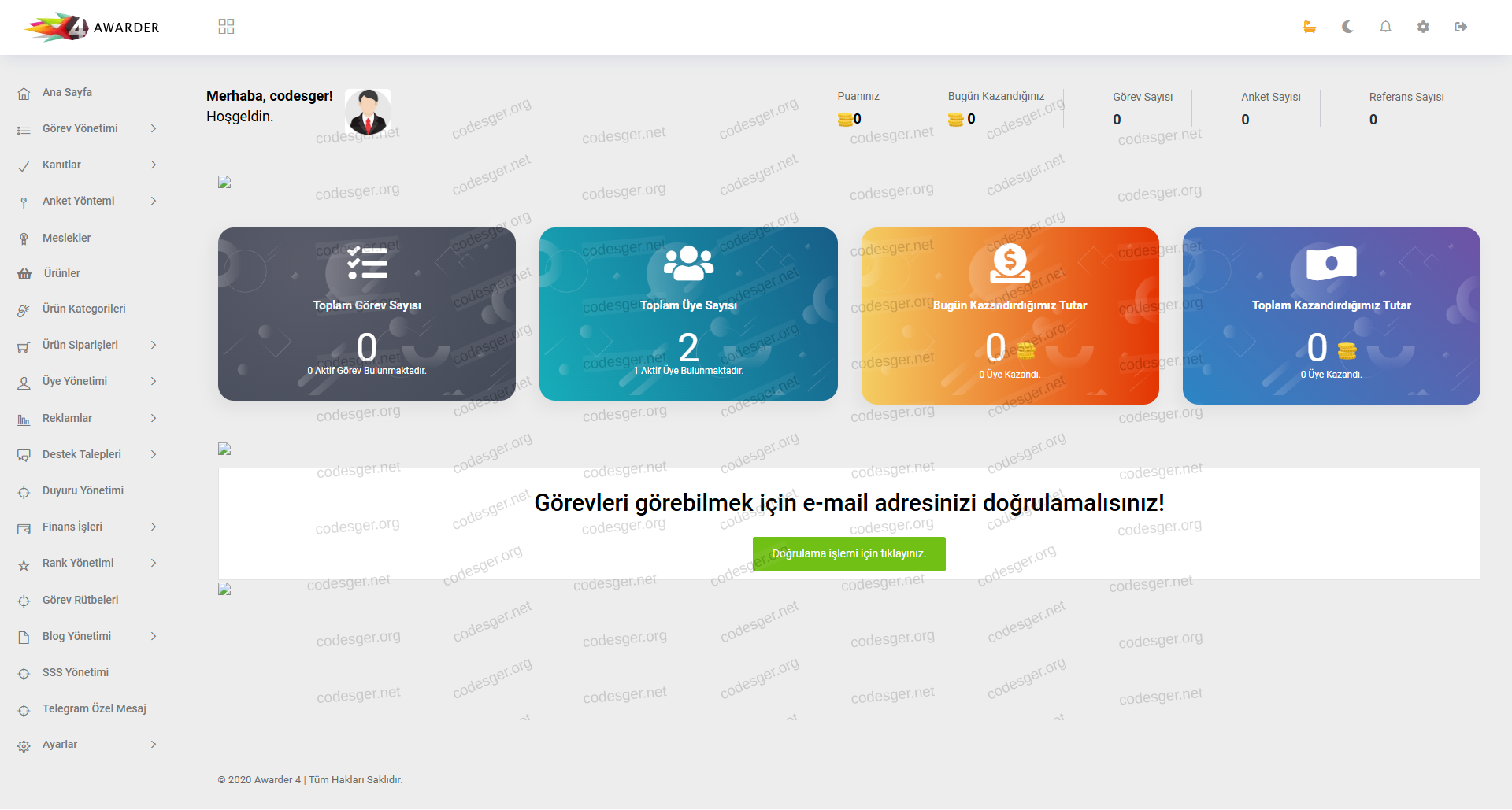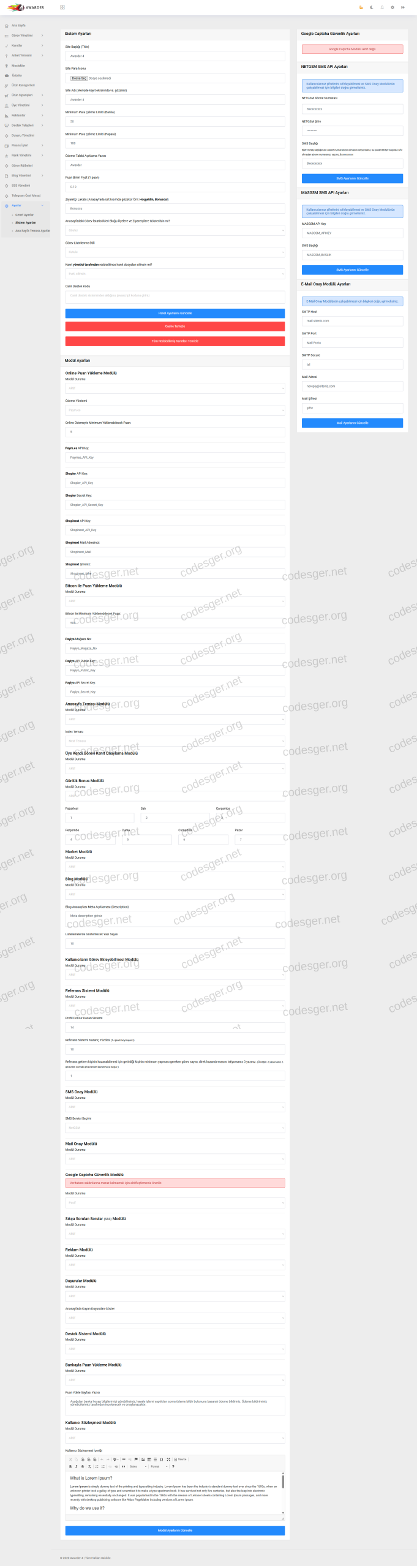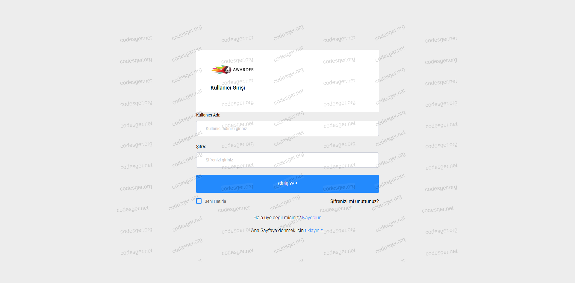The site language is completely Turkish. You can log in to the admin panel from the user panel with an admin account.