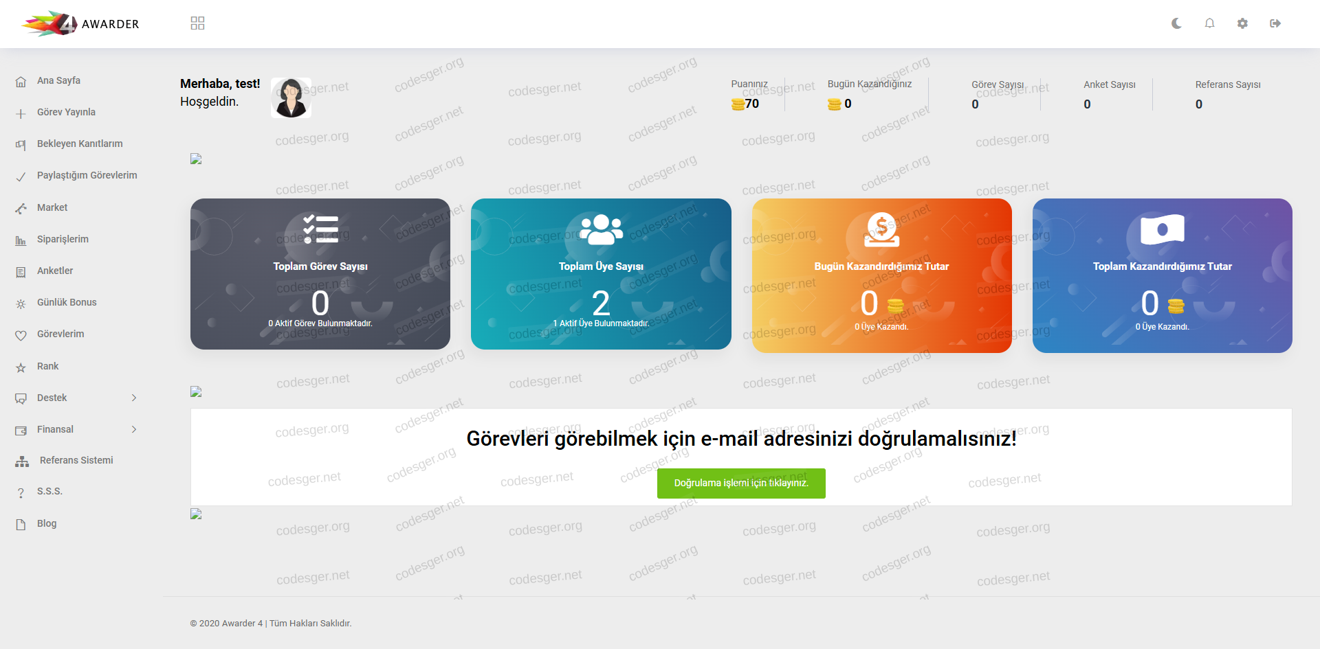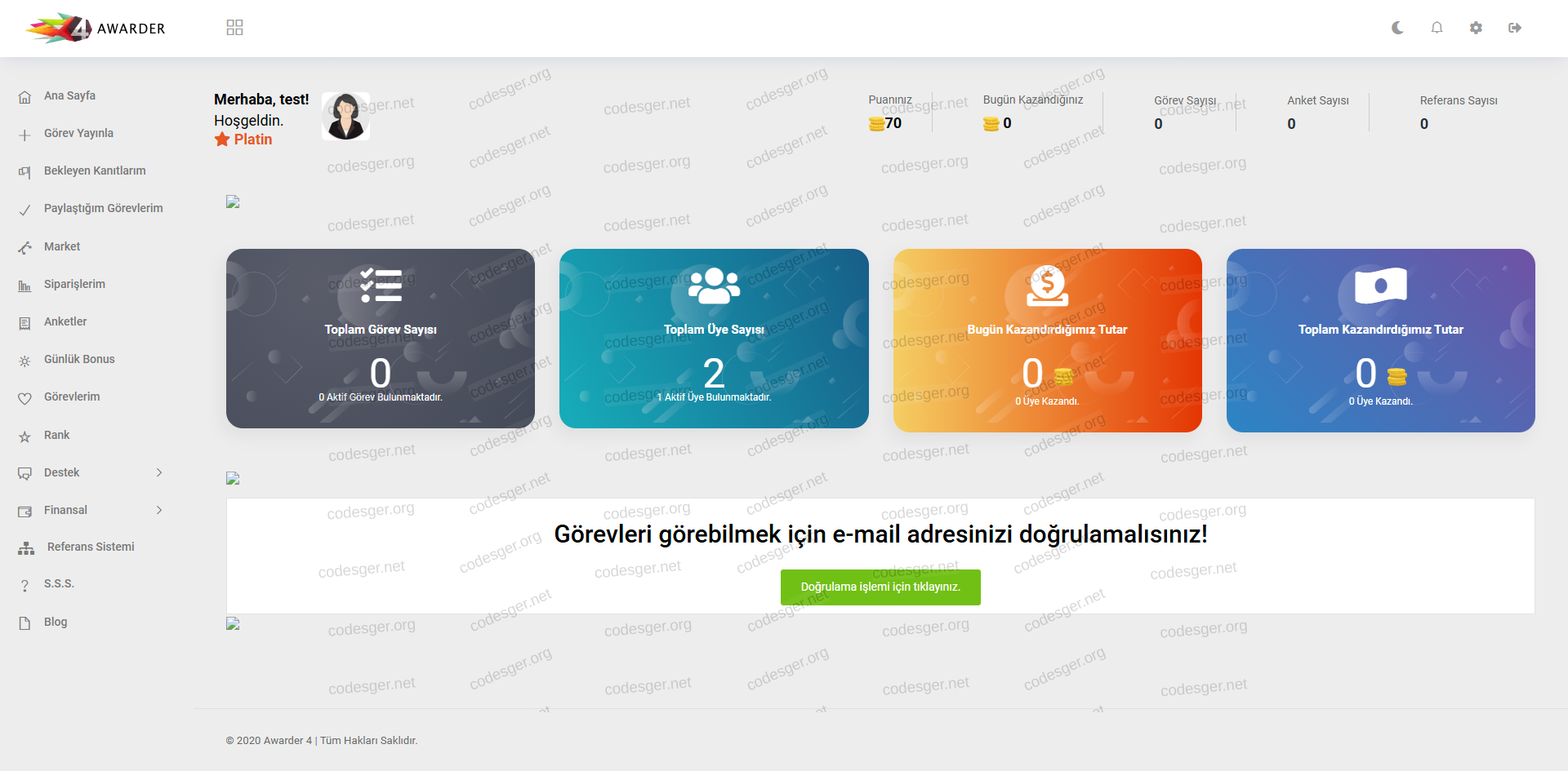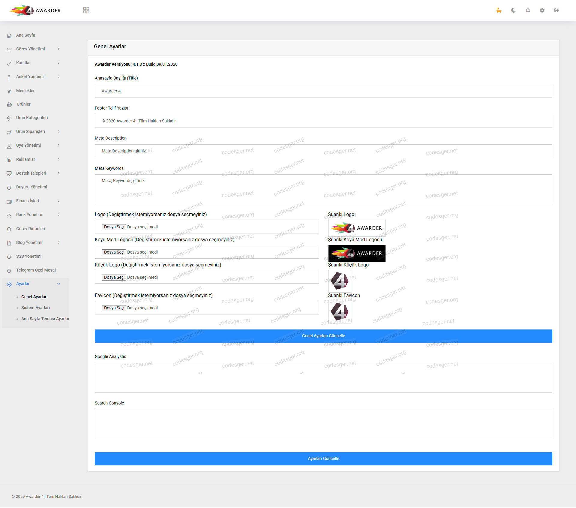 The site language is completely Turkish. You can log in to the admin panel from the user panel with an admin account.