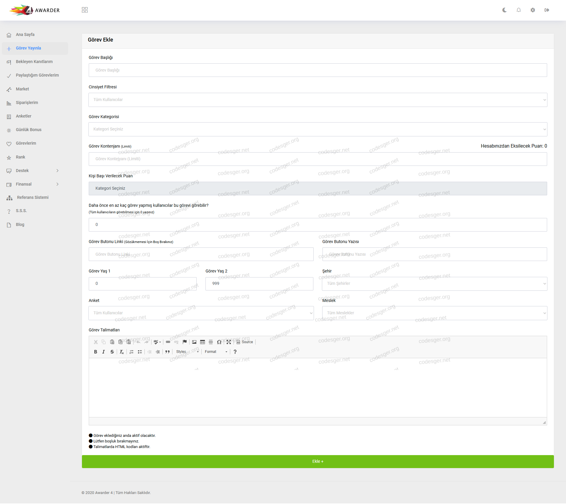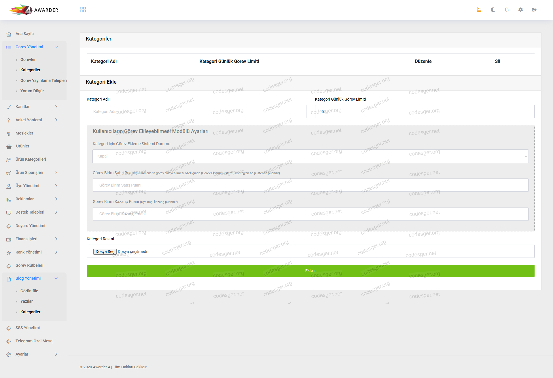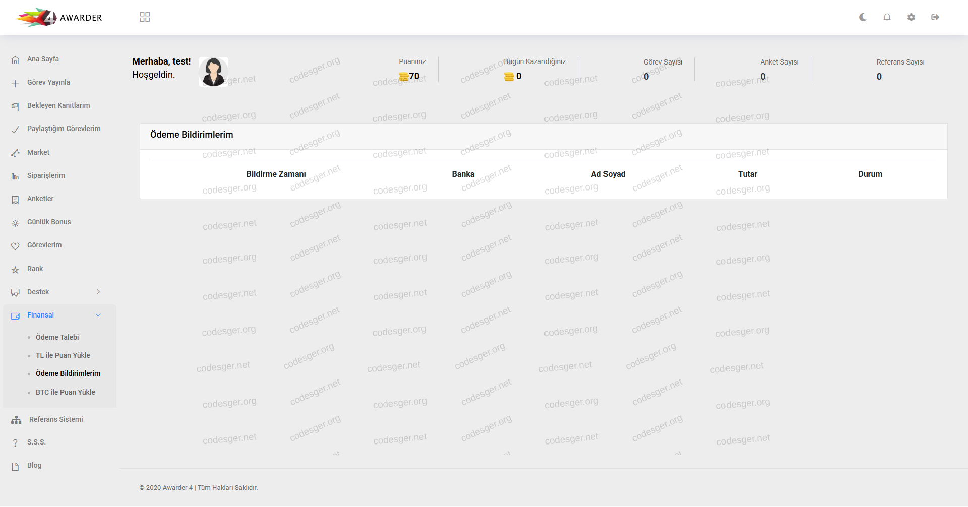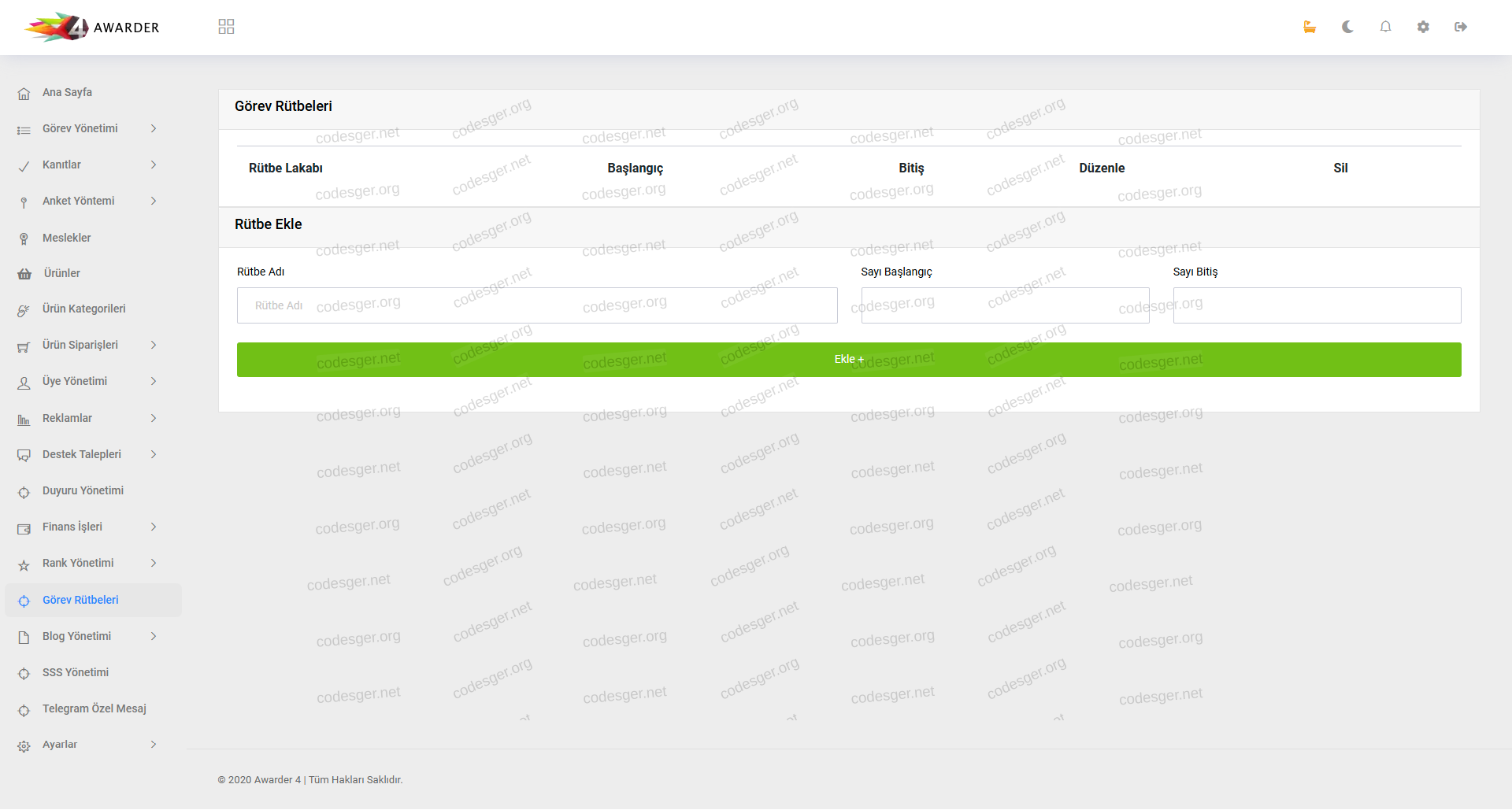 The site language is completely Turkish. You can log in to the admin panel from the user panel with an admin account.