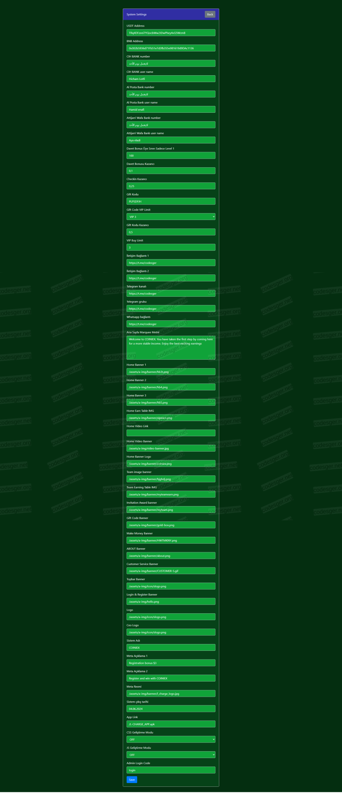 ⚡️It includes a treasure chest code bonus feature, a daily check-in bonus feature, and a bonus feature that gives members a bonus for each invite up to a limit you set for Level 1. Everything can be configured in detail from the admin panel, and we placed great importance on this while developing the software. The sale is exclusively with us and no one else. To own this high-quality script, write to me immediately. 💯It has multilingual feature and does not use Google Translate 💥