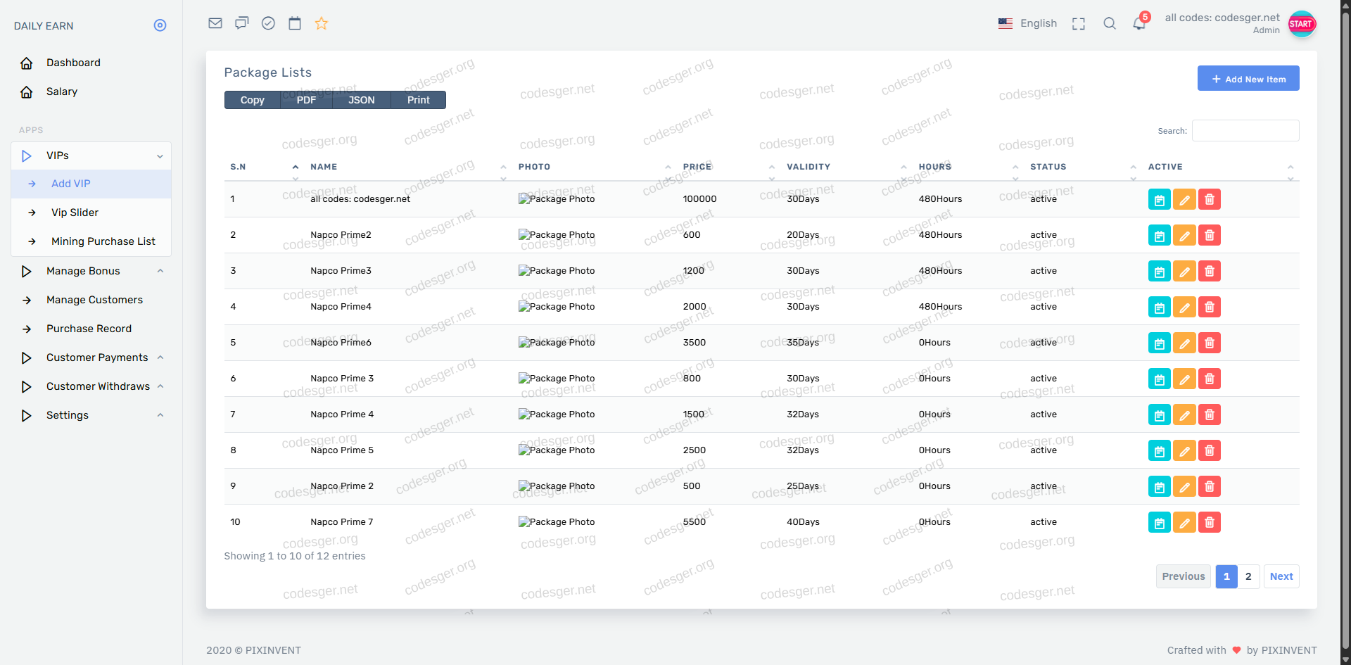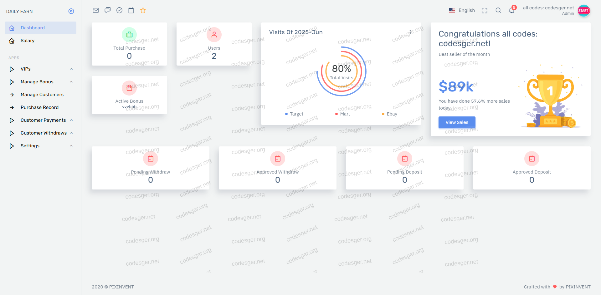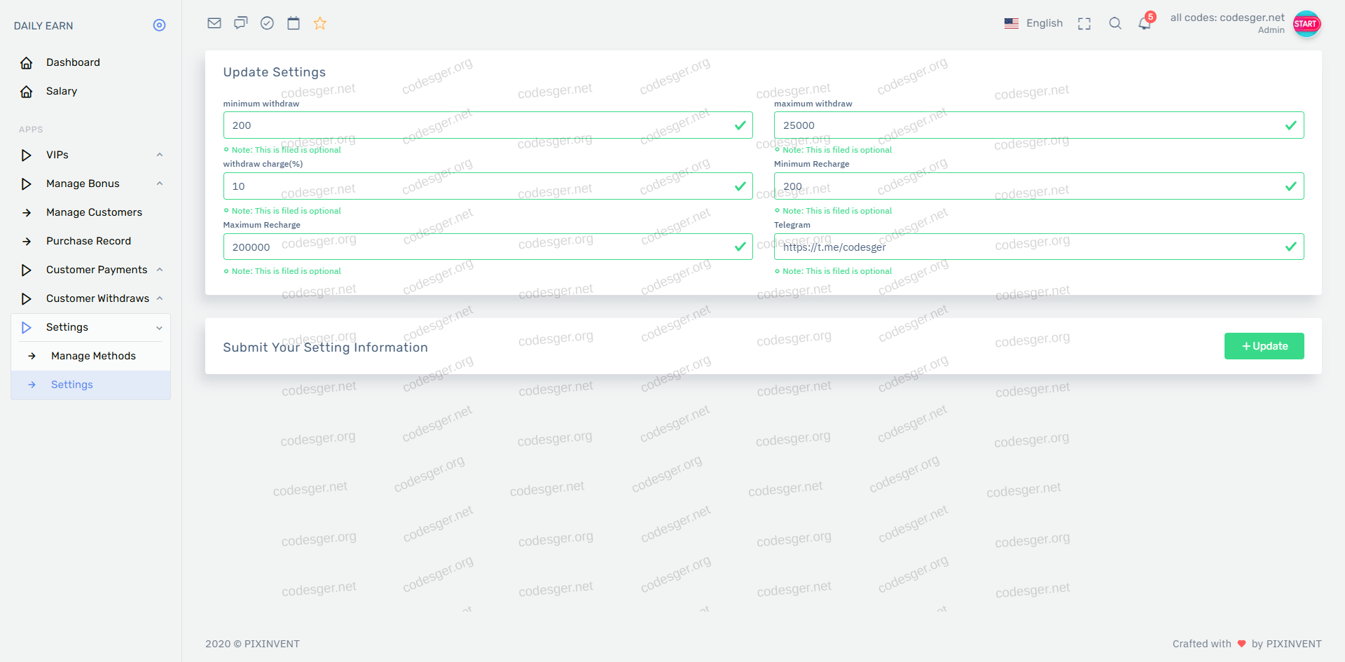 admin panel screenshot: