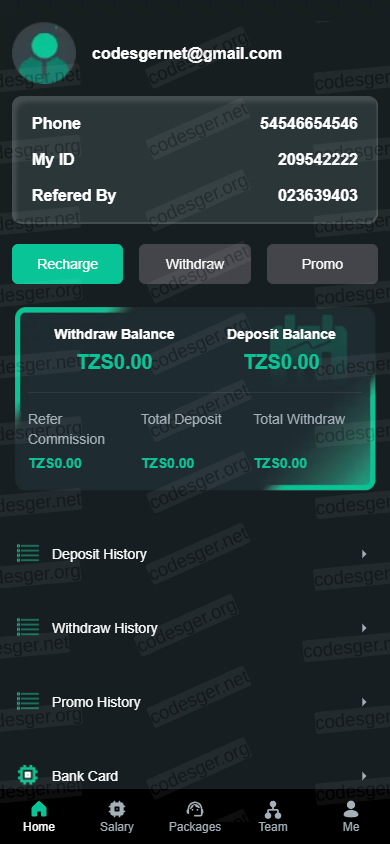 user panel screenshot: