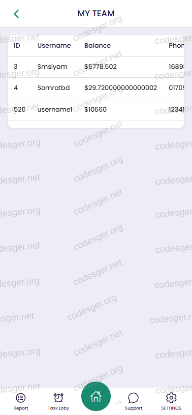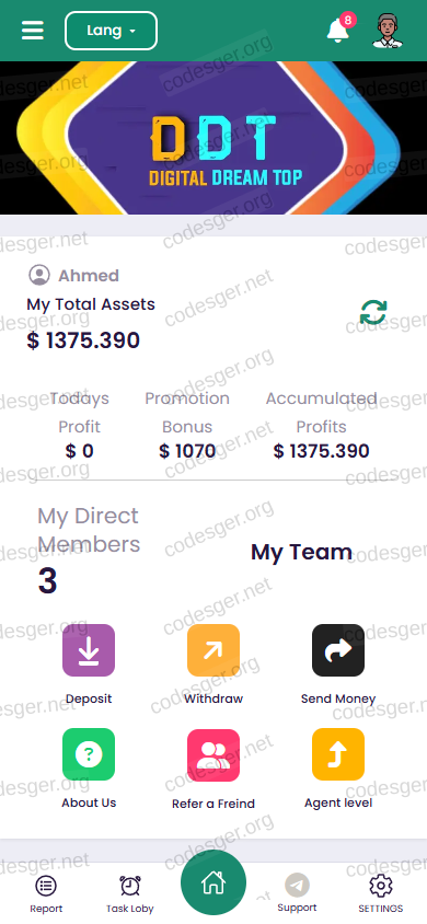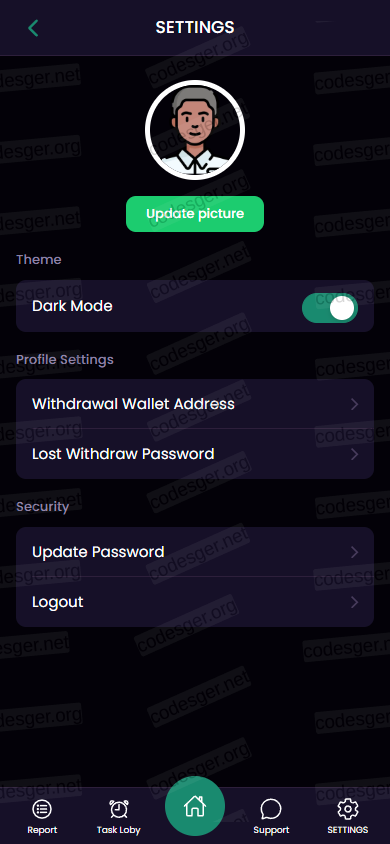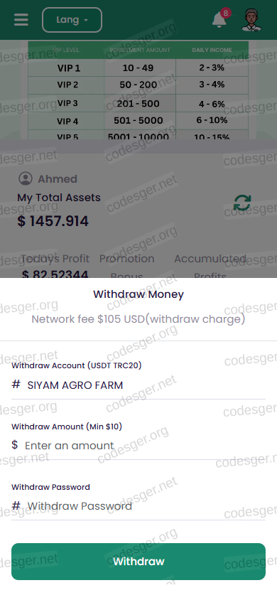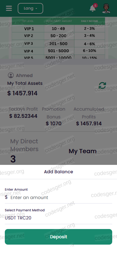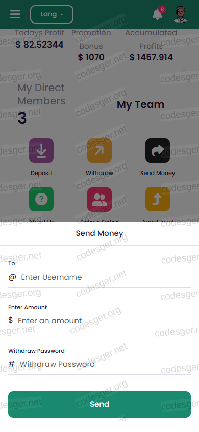 user panel screenshot: