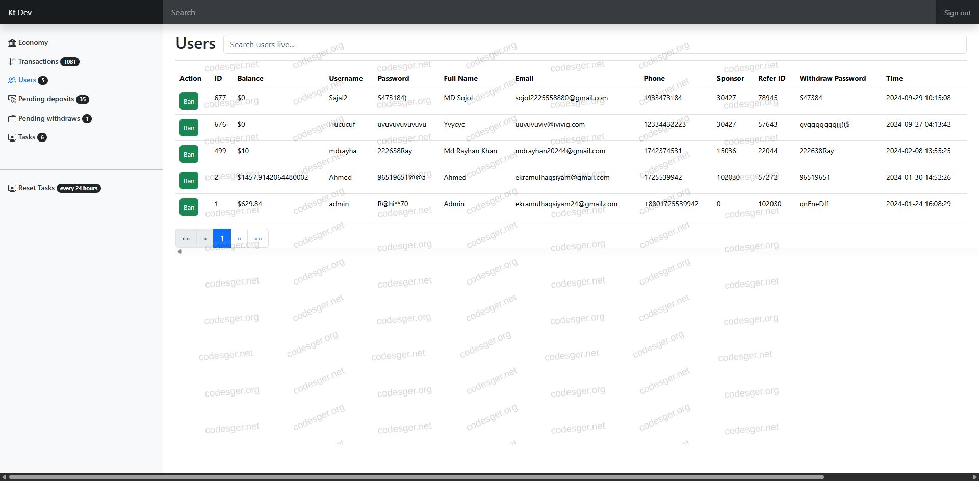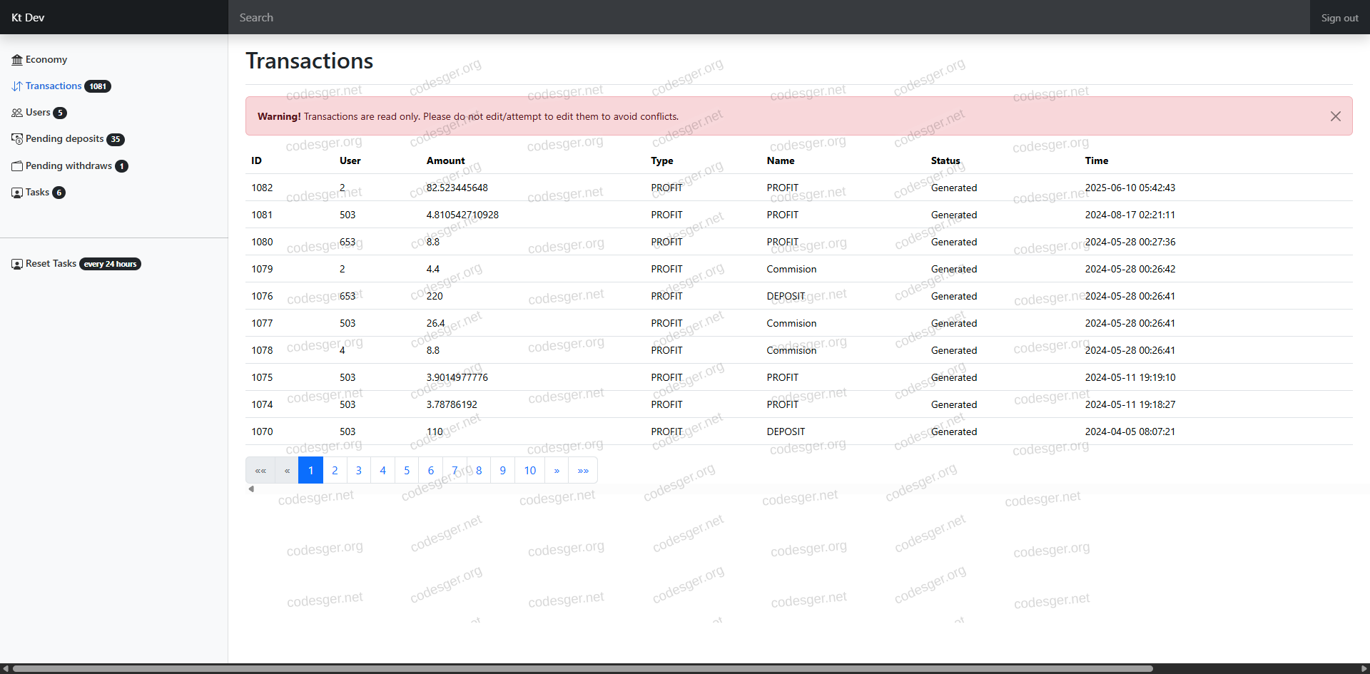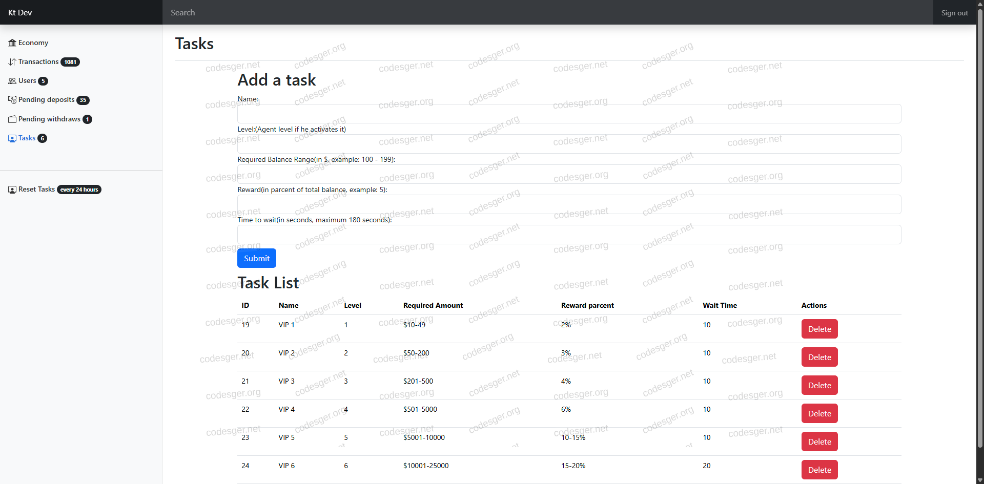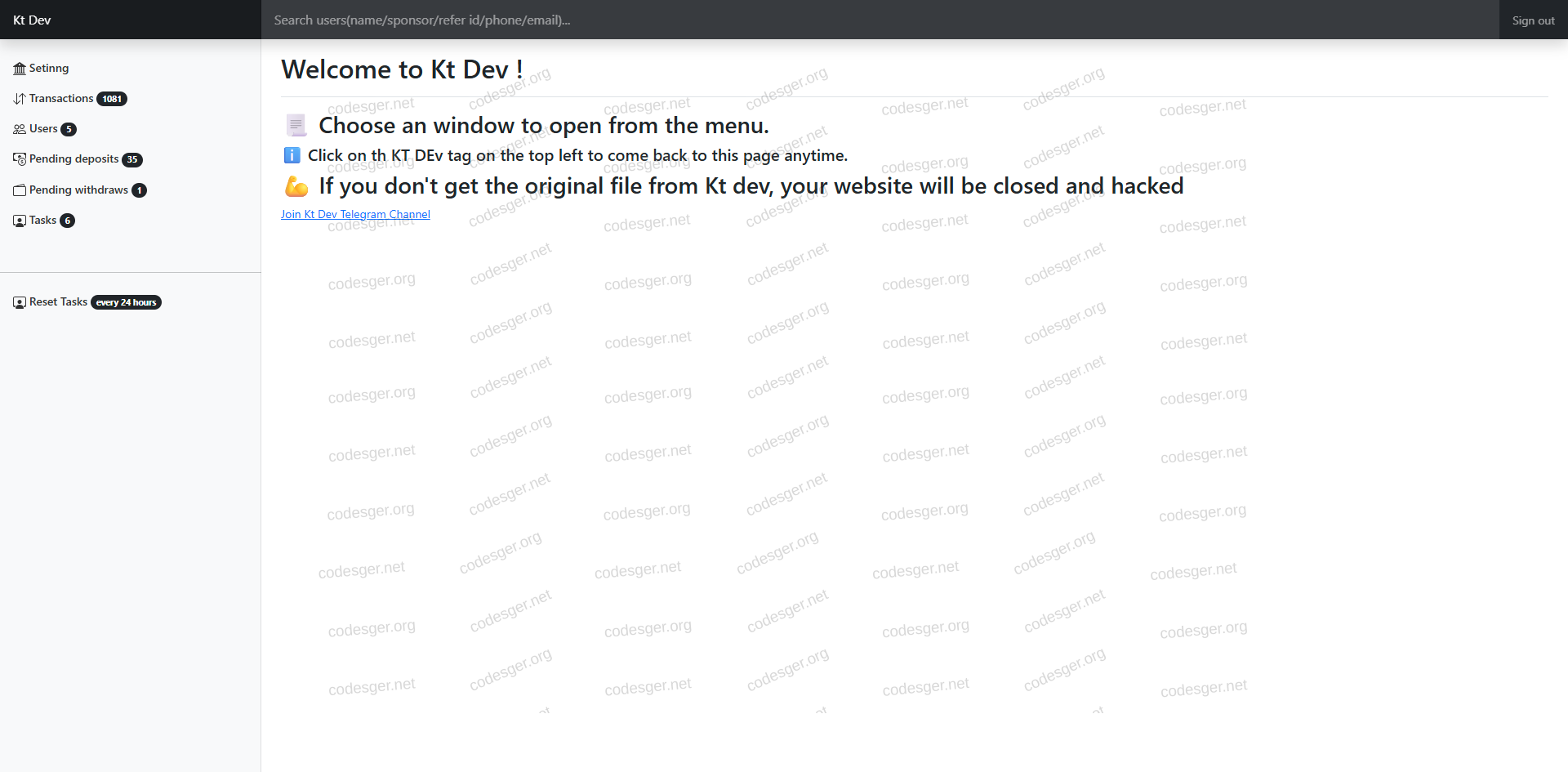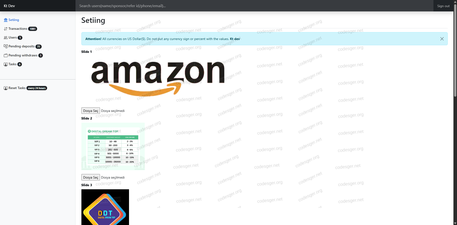 admin panel screenshot: