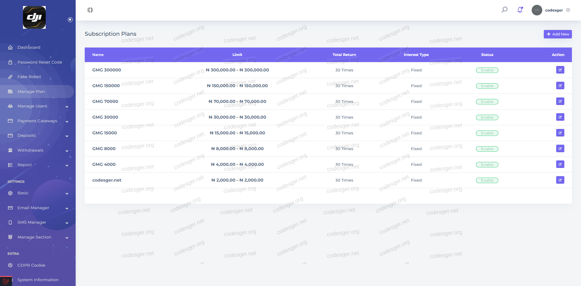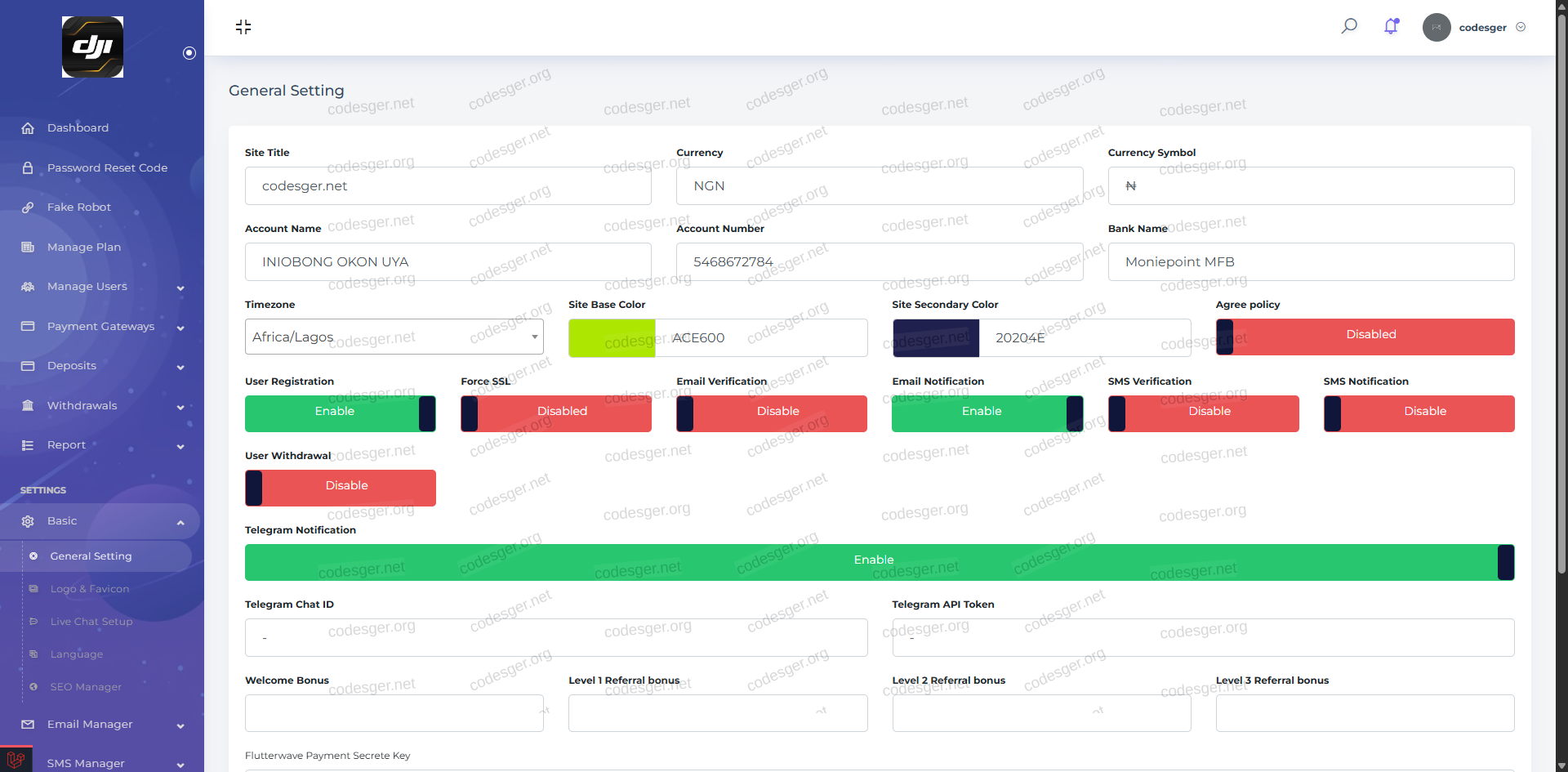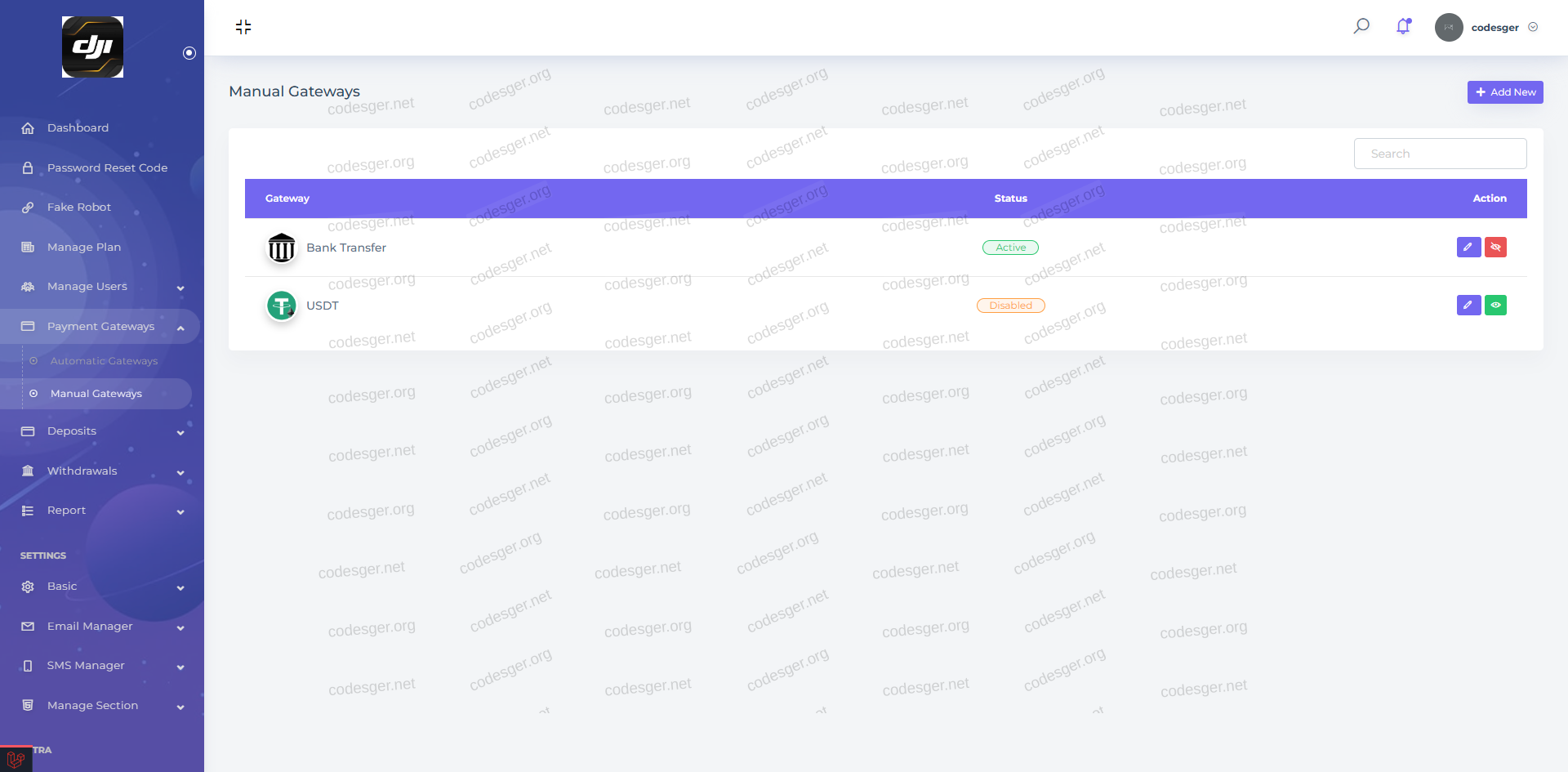 Admin panel: