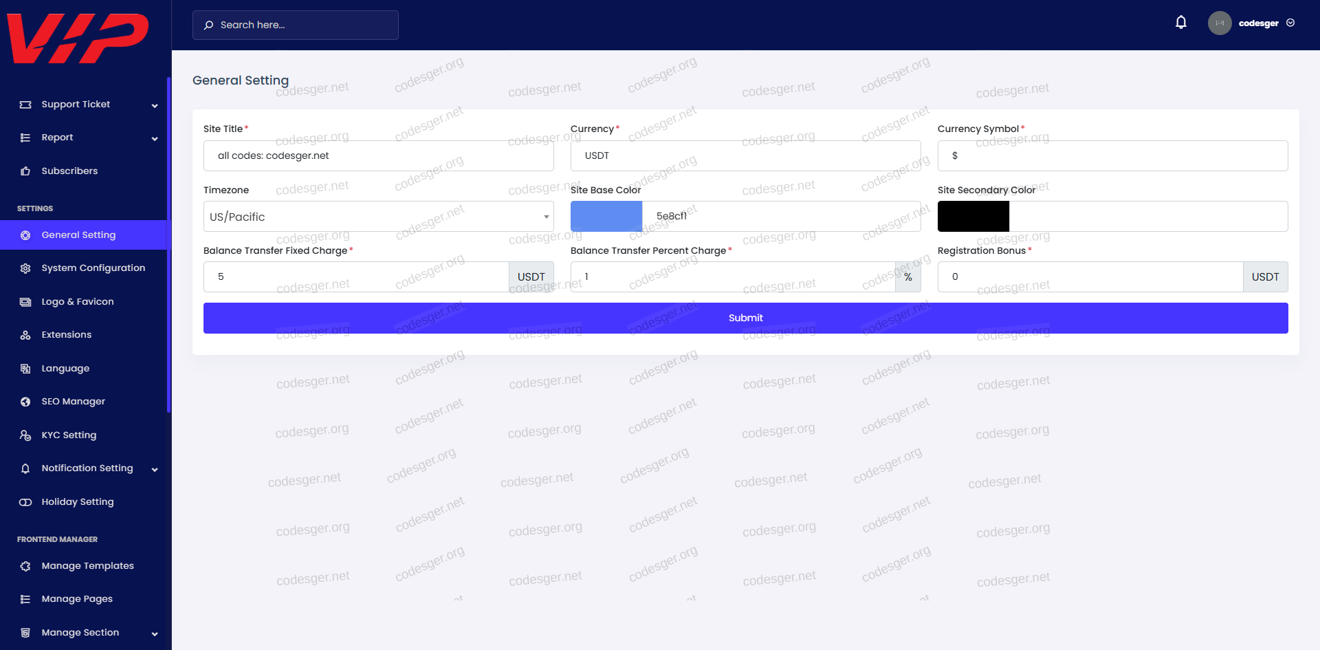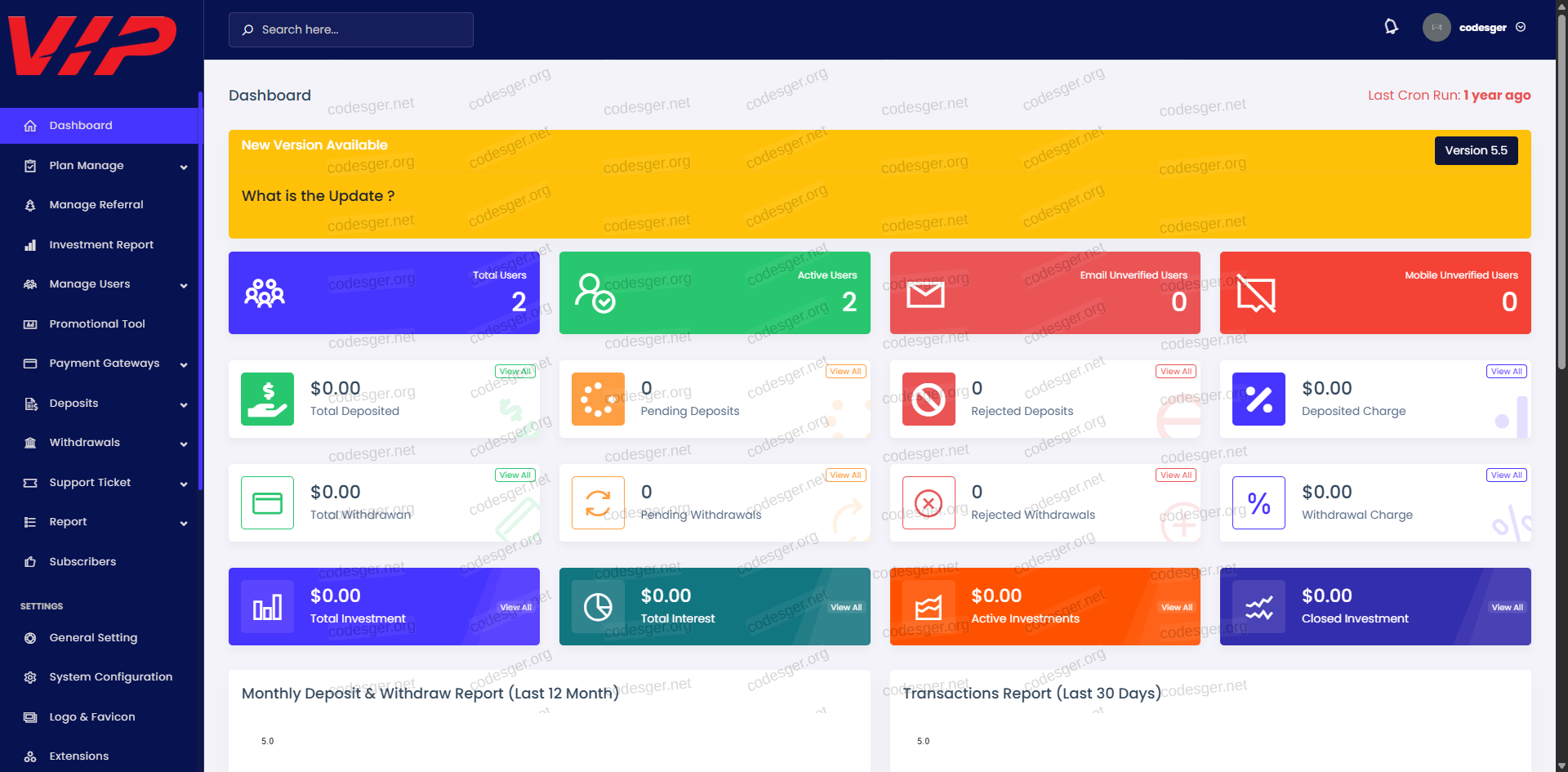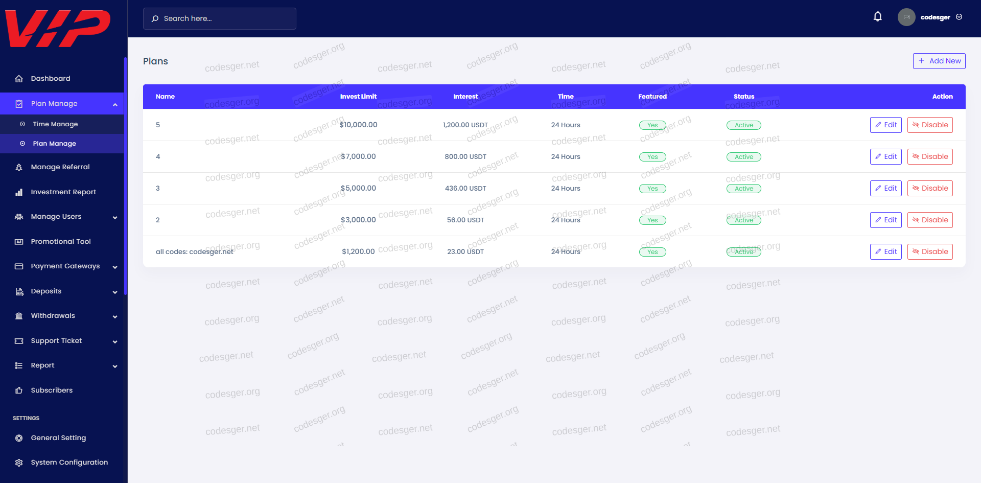 admin panel screenshot: