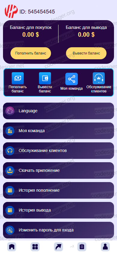 The main language of the user panel is Russian and there are many language options. It uses the Google Translate API.