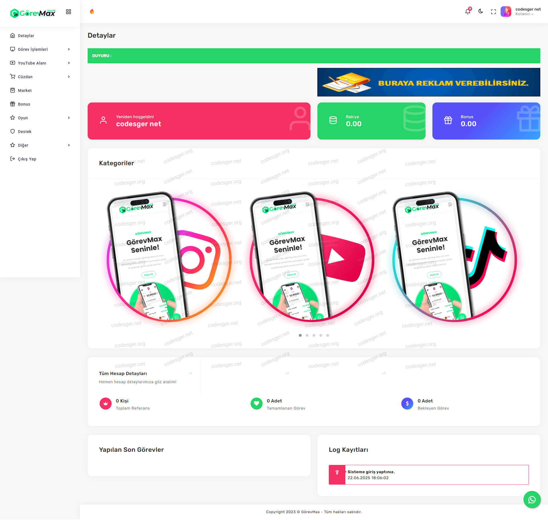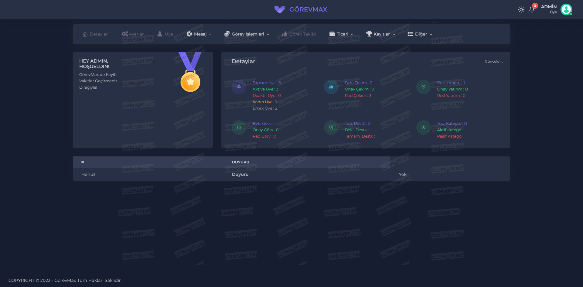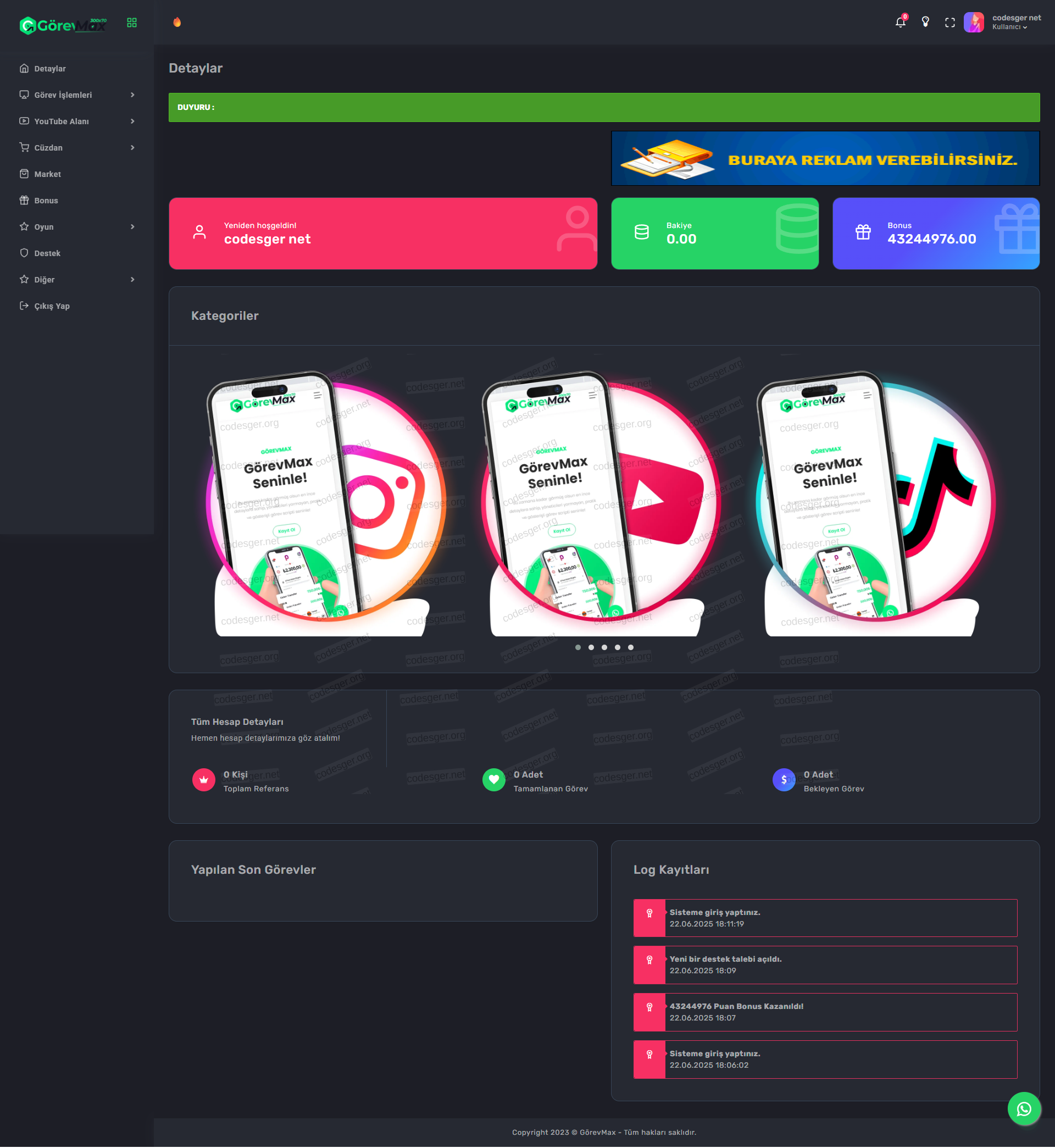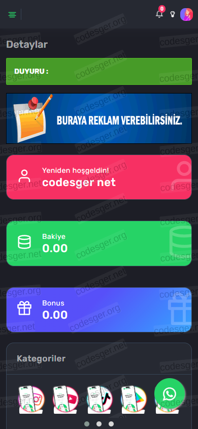 The website language is completely Turkish and has a dark theme feature. If you want, you can upload it yourself, translate the language and customize it, it has a good code structure.