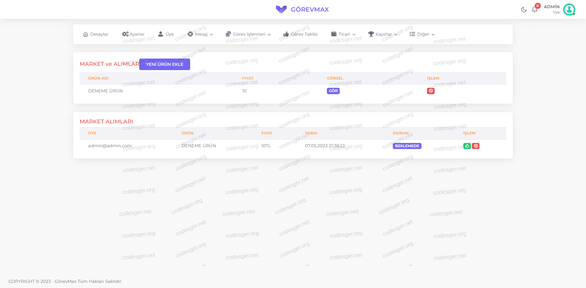 admin panel screenshot: