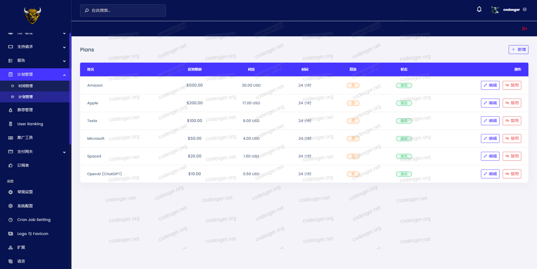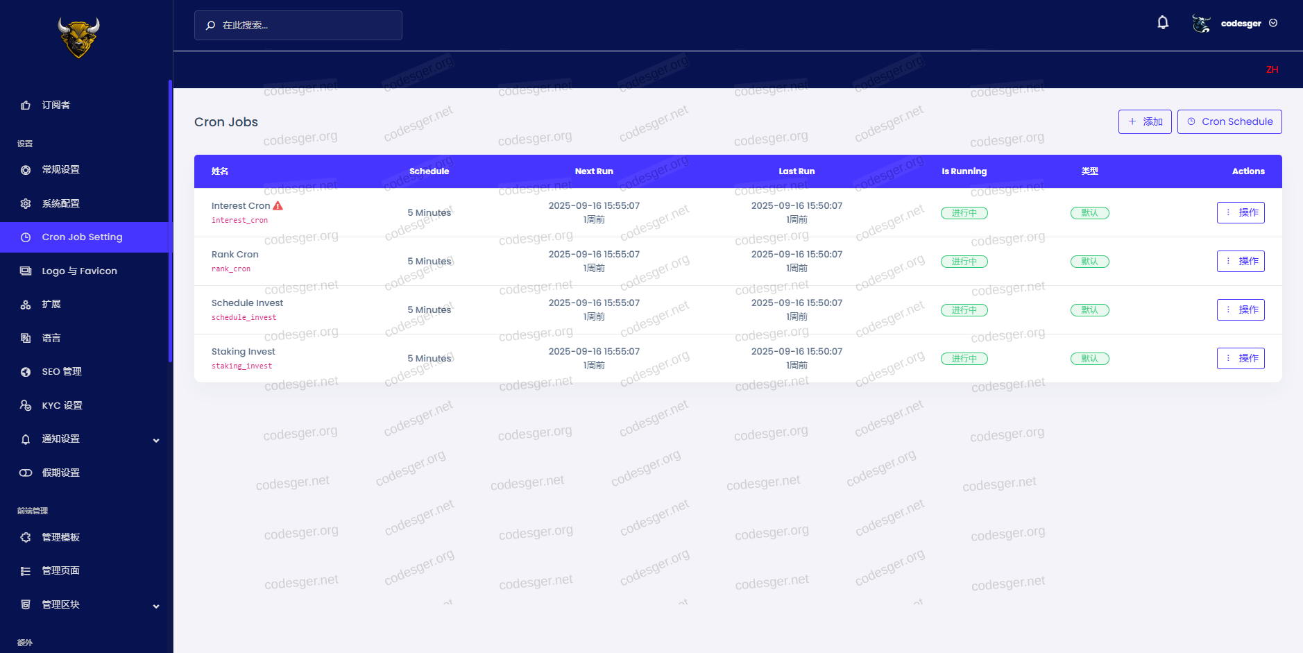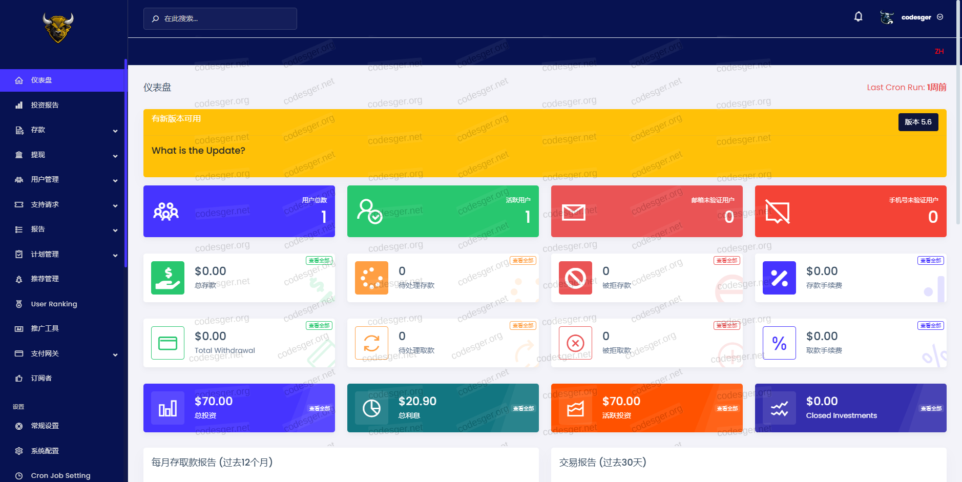 The administration panel has two different language options: Chinese and English.