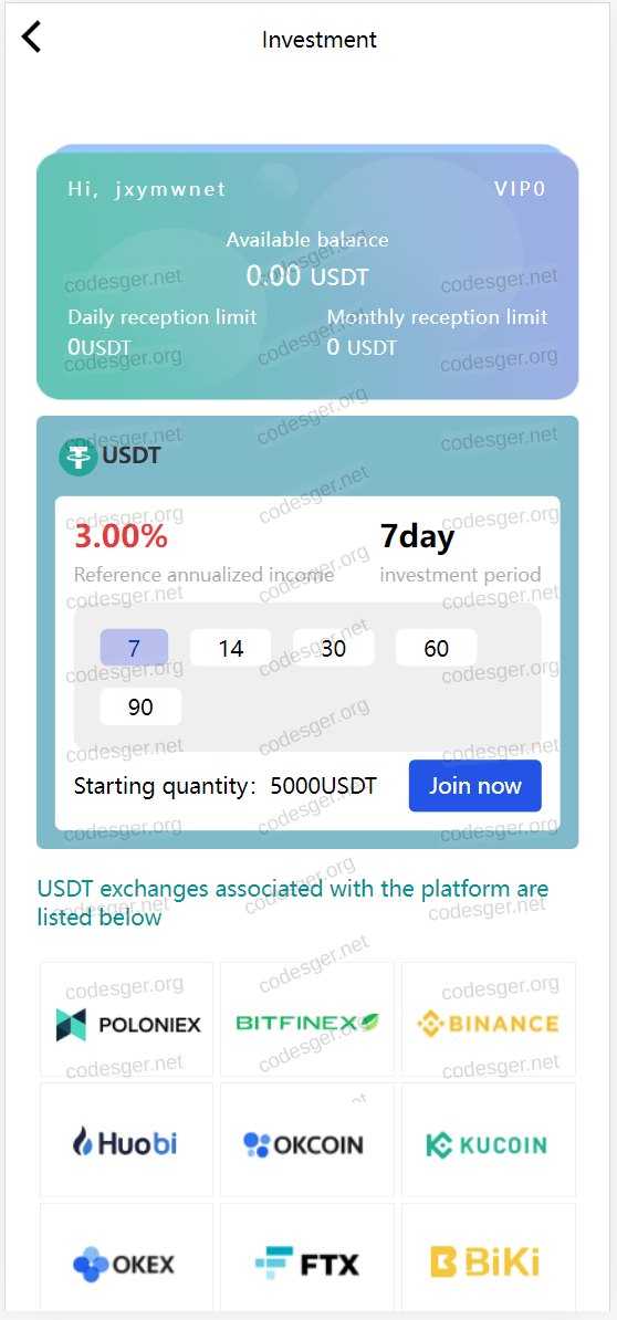 The homepage just displays the prices of various currencies and has no actual function. This is just an investment and a VIP function.