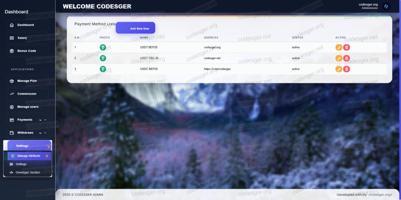 admin panel: