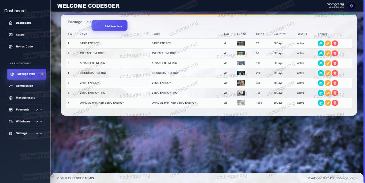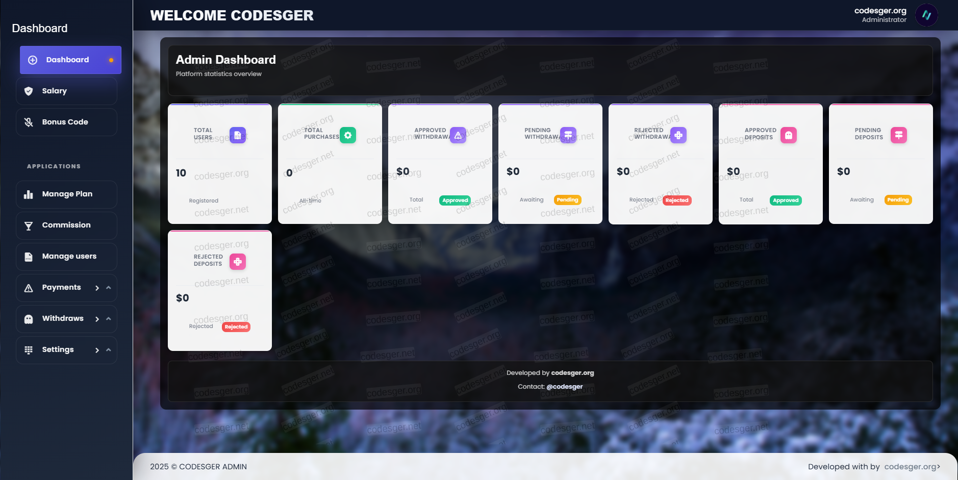 admin panel: