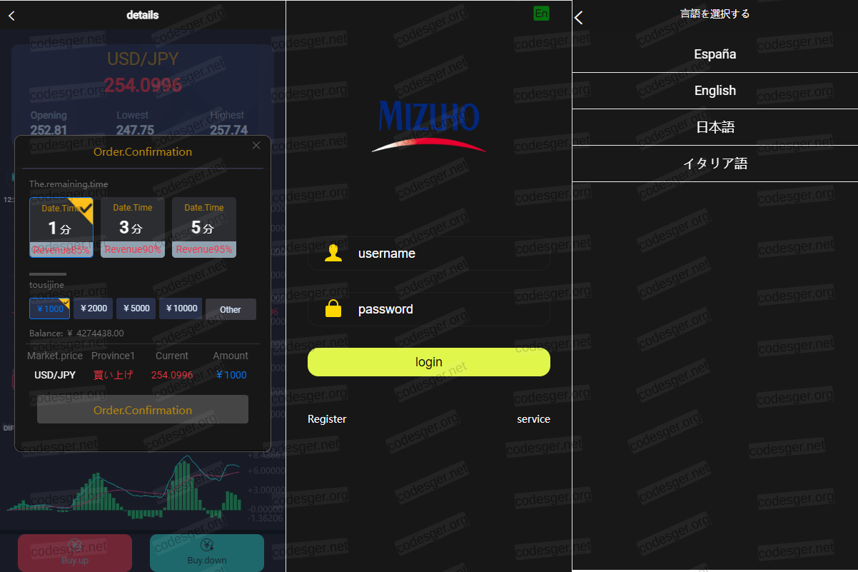 Currently there are multiple languages: English, Japanese, Spanish. The system operates in Japan by default. The product is the foreign exchange name of the virtual currency, not real data.