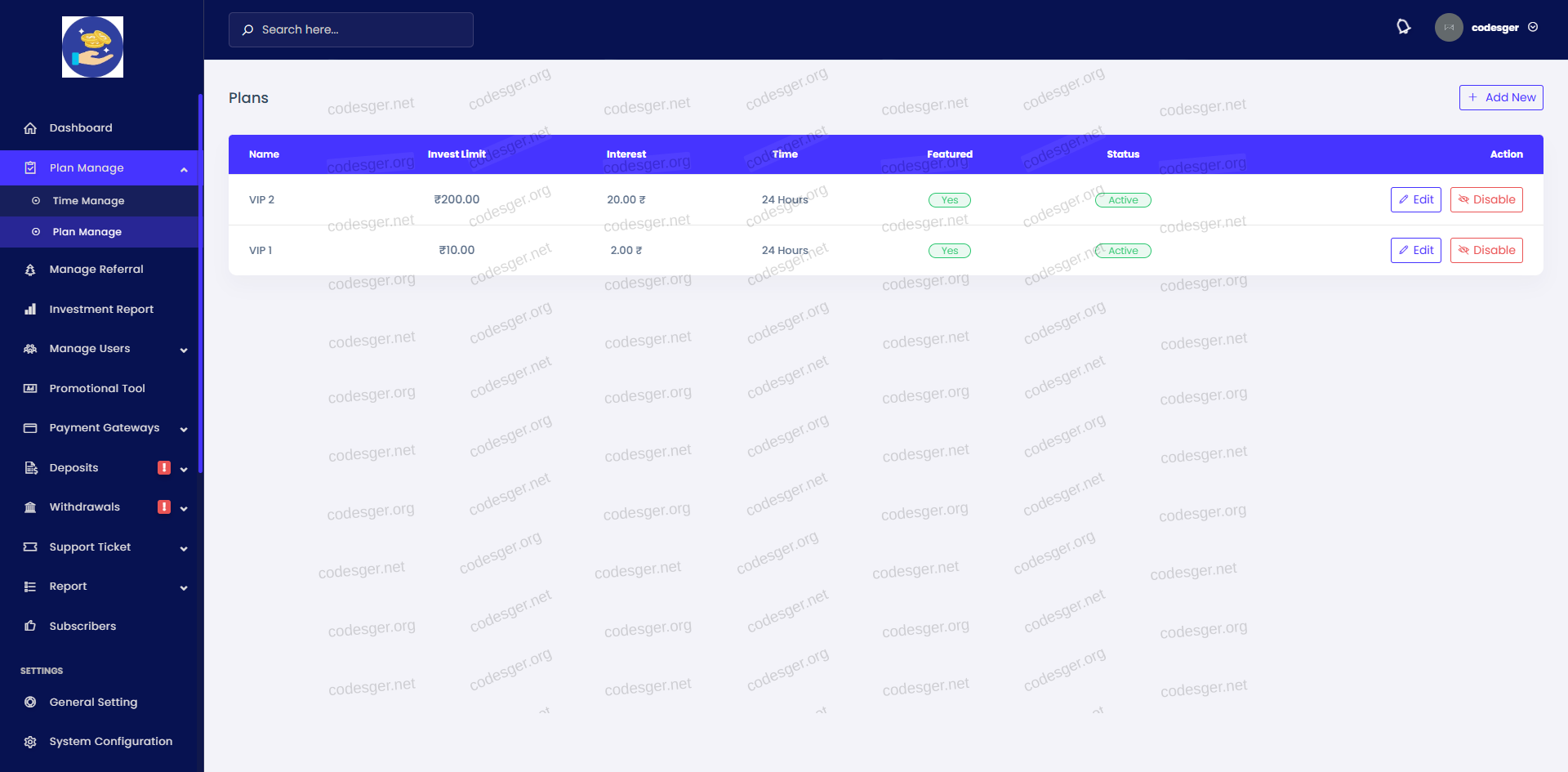 admin pnael screenshot:
